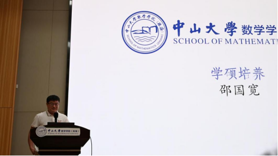 大会进入第二项议程,邵国宽教授为新生系统解读了数学学院(珠海)硕士研究生的培养方案与育人理念。邵老师从选课体系、培养环节到奖助金机制、研究生学年时间的变化,向研究生新生介绍了学院严谨而富有层次的培养结构。