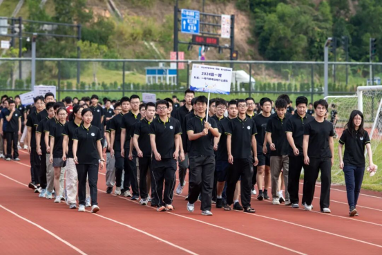 上午九点,经主持人逐一介绍,各班级方阵迈着矫健整齐的步伐步入会场:成员们脸上洋溢着自信与热情,眼神坚定、斗志昂扬,他们喊着嘹亮的口号,昂首阔步间尽显数院人的独特风采,为秋日赛场增添了一抹亮丽的色彩。